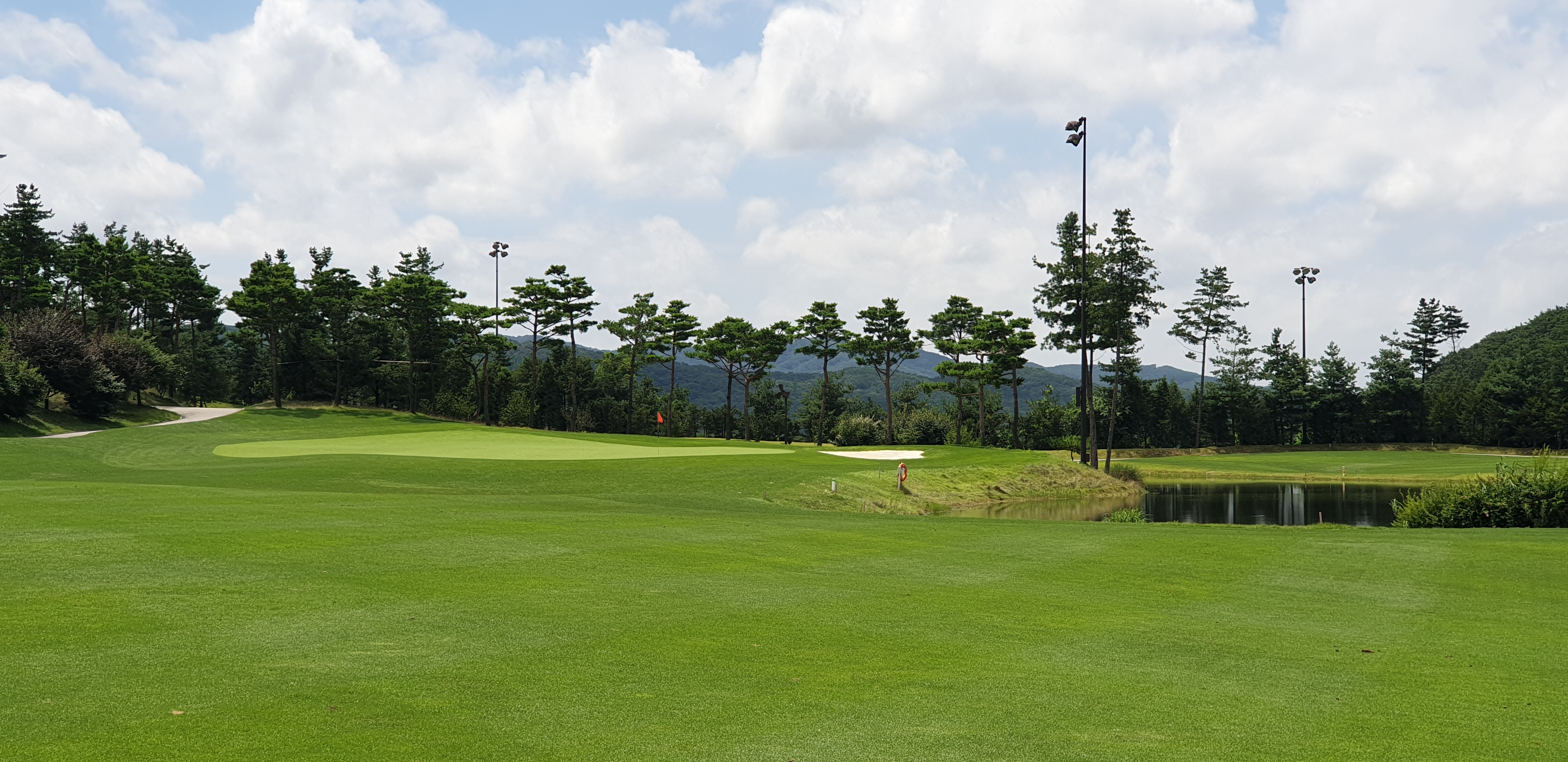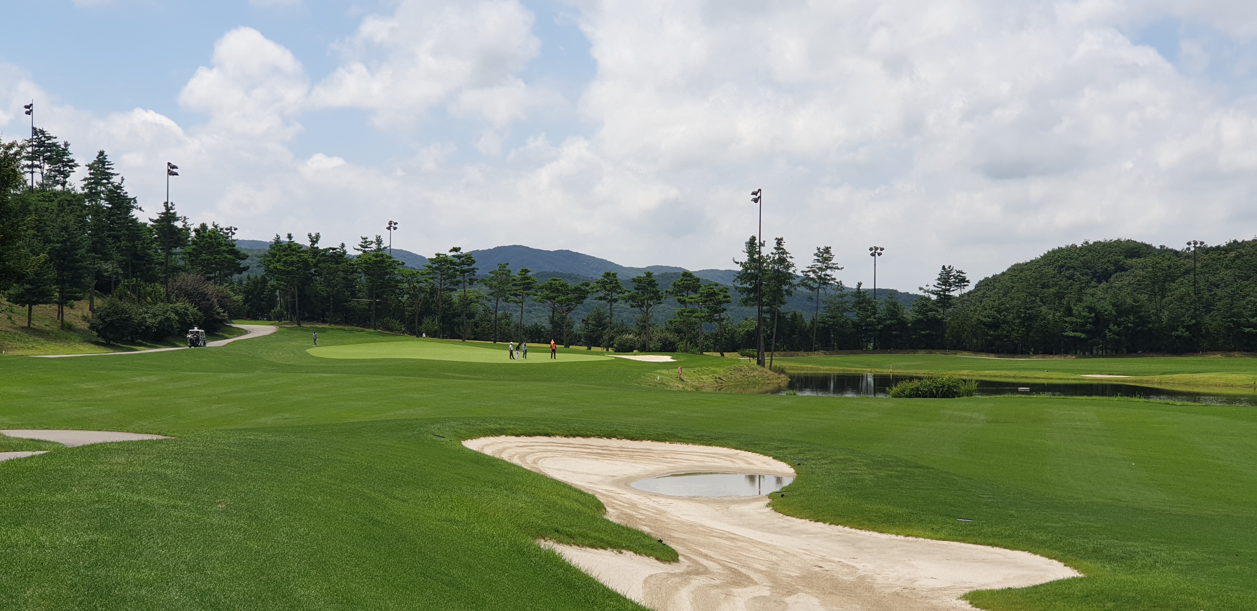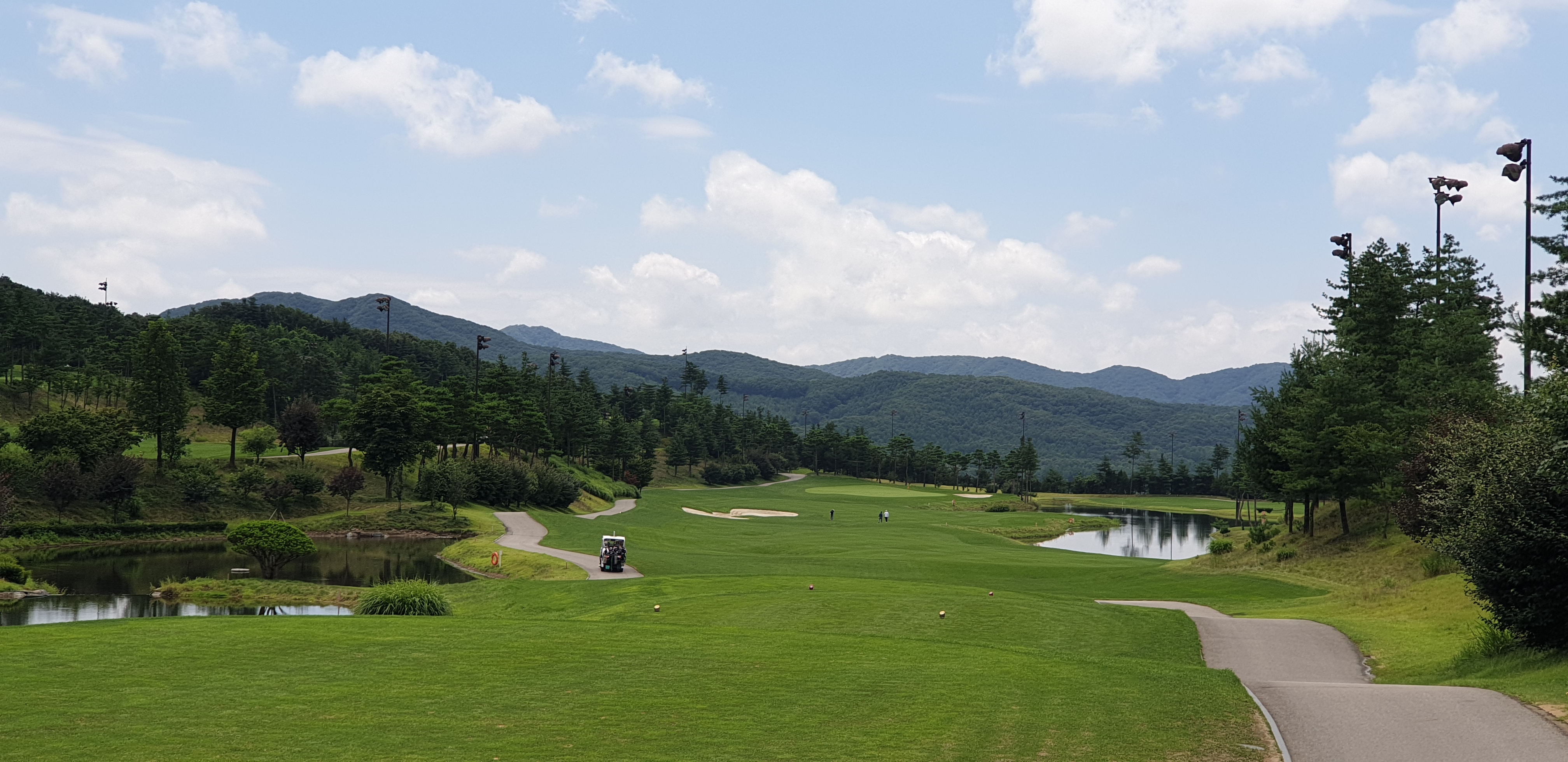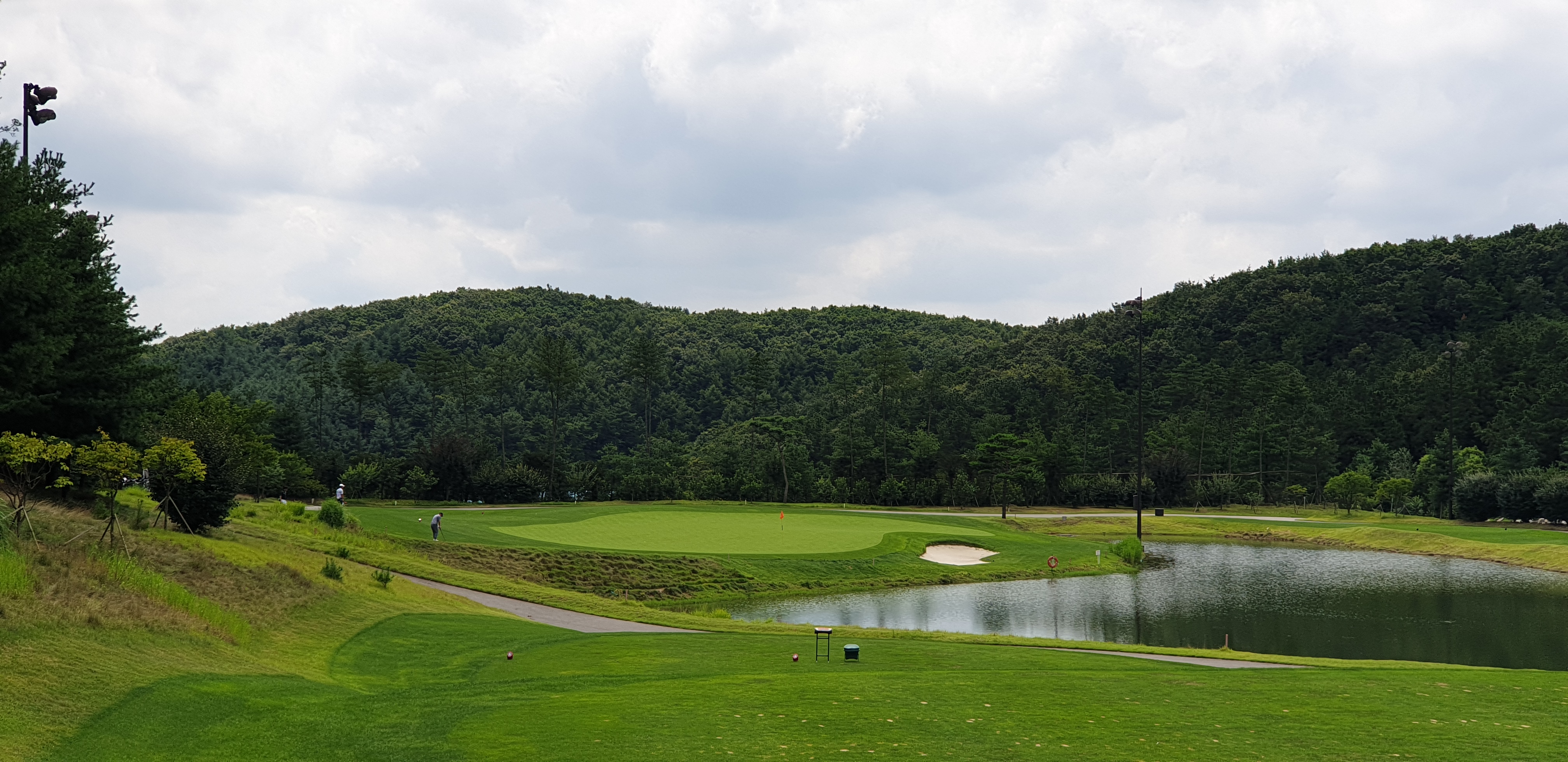 몇일간 비가 상당히 왔지만 다행히 그친 후에 라운드를 시작한다. 그런데 몸이 덜 풀렸는지 더워서인지 첫 홀부터 공이 열려 맞는다. 지난 겨울부터 꾸준히 레슨을 받은 덕택에 훅이 나면 났지 슬라이스나 풀샷은 없었는데 레슨을 중단하니까 다시 이런다. 시작부터 겸손해지는 라운드인데 아무래도 다시 레슨을 받아야할라나 보다. 못치기는 했지만 양측의 호수를 바라보며 티샷하는 서코스 1번부터 아름다와서 나간 공이 더 아쉬웠다. 그래도 이후의 홀들에서는 무난하게 진행했고, 길어서 투온이 어려웠음에도 80대 후반으로 마쳤으니 살짝 긴 전장을 빼면 어렵지는 않은 골프장이었다. 서코스 8번은 우리나라 골프장에서 가장 긴 파 5 홀이라고 하는데 오르막이기도 해서 나같은 경우는 쓰리온을 아예 포기하고 쳤지만 장타자들이 욕심내다가 망가지는 모습을 종종 보았다. 아름다운 내리막 파 3인 남 5번은 서원밸리 8번과 매우 흡사해서 설계자가 그 홀을 오마쥬한 것이 아닐까 싶을 정도 (이 홀 말고도 서원밸리와 비슷한 느낌의 홀들이 여럿 있었는데 단순히 같은 산이니까 그렇겠지 했다). 그리고 이제는 우리나라 골프장에서 흔하게 보는, 내리막에 호수를 끼고 우측 도그렉으로 도는 파 5인 남코스 8번이 서원힐스에서는 시그너처 홀이라고 한다. 페어웨이가 꺾이기 시작하는 세컨샷 지점의 왼쪽에는 (박인비 프로가 결혼식을 올린) 예식장이 있다.