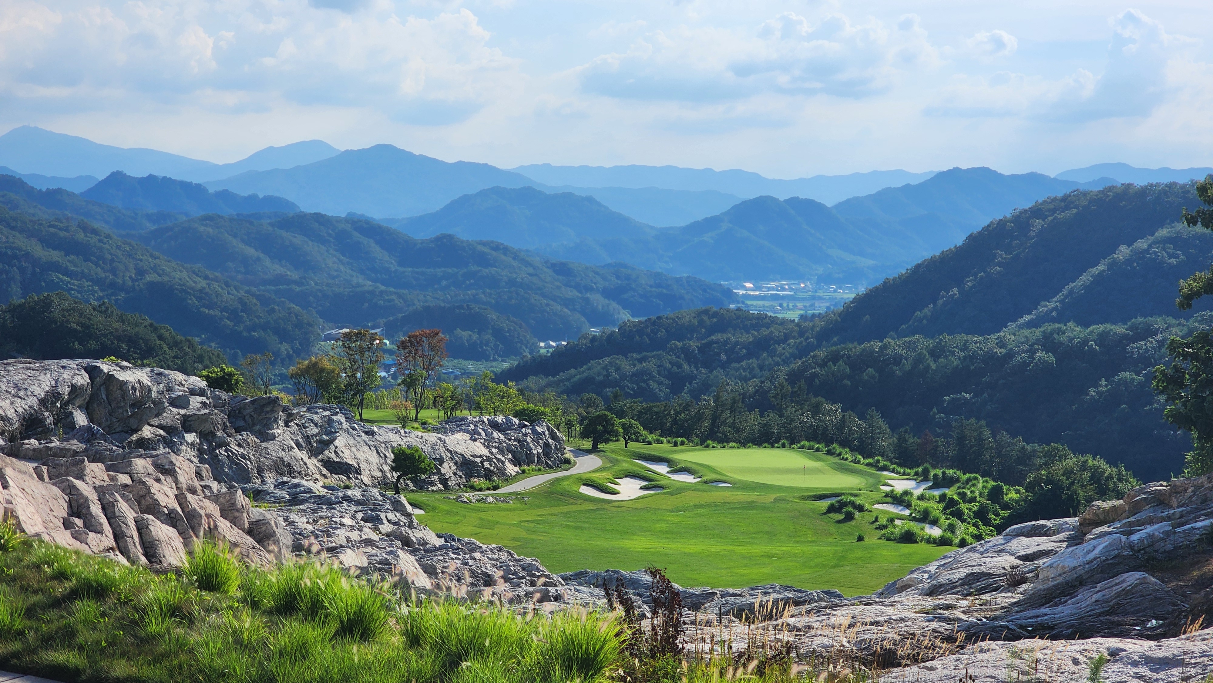 오히려 후반의 스톤 코스는 좋았다. 1번 홀부터 그린 뒷편으로 암벽이 둘러싼 모습으로 압도당하게 되고, 이후에도 저멀리 겹겹으로 능선이 보이는 것은 내가 우리나라 골프장에서 바라는 모습이었다. 코스의 설계도 재미있어서 페어웨이 옆으로 벙커가 늘어서있다던지 도그렉이라던지 어려울 것도 같지만 나같이 또박또박 나아가는 이들에게는 스코어도 괜찮게 나온다. 스톤 7번부터 9번까지도 인상적이어서 다시 온다면 나는 스톤/트리의 순서로 예약할 것 같다. 더운 여름날 오후에 잔디도 상태가 별로였으니 차라리 오전 티타임이었다면 워낙 안개가 잦은 지역이라서 더 멋있었을 것이다. 다만, 국내 최고가 럭셔리 어쩌고가 옳은 방향인가 의문이 드는데 뭐 알아서들 하시겠지만 관심을 끌어보기 위한 어그로였길 (두번의 방문으로 카스카디아의 팬이 되어버린 입장에서) 바란다. 춘천이나 홍천에 수준급의 코스들이 즐비한데 카스카디아가 두배 비싼 골프장이 되려면 조금 나은 코스 정도로는 어림없을 것이다.