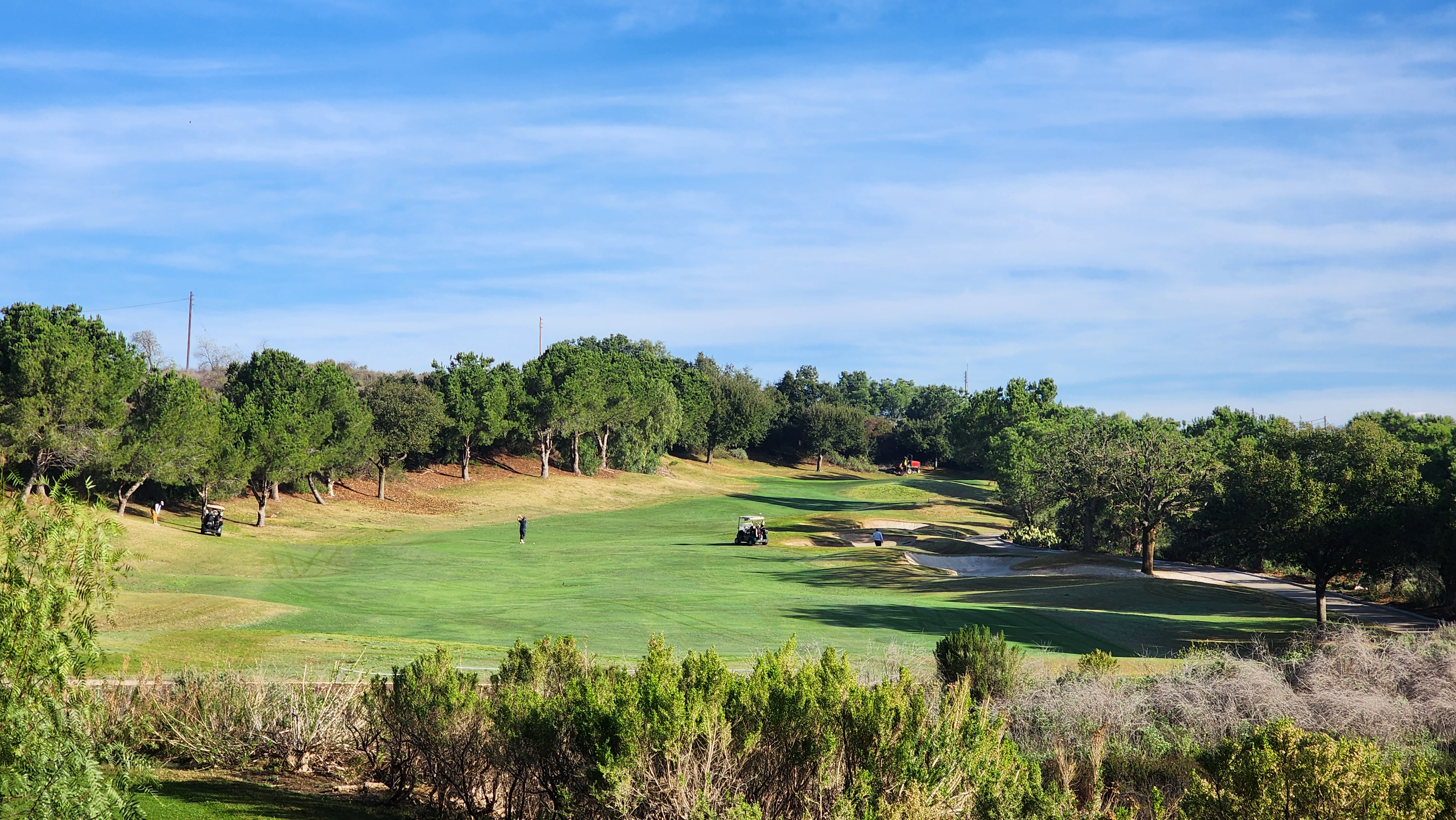 우리는 근처에 살면서 자주 온다는 미국인 한명과 조인했는데 대단한 장타자임에도 드라이버를 가져오지 않았다고 한다 (특히 전반에서는 치면 안된다고 말했다). 나야 물론 드라이버를 안치면 블루티에서 플레이가 어렵기 때문에 썼는데 공을 여럿 잃어버리며 힘든 라운드를 했다. 언덕 말고도 곳곳에 연못이 있었고, 특히 클럽하우스 앞에 커다란 호수가 있어서 아름다운 9번과 18번은 특히 어려웠다. 전반에서는 고저차가 큰 3번 파 3 홀과 저멀리 주택가의 경치를 내려다보며 치는 7번이 인상적이었다. 그린은 크지 않으면서 자잘한 굴곡이 많아서 어려운 편이다. 후반으로 접어들면 더 길어지기 때문에 드라이버를 쳐서 공을 잃어버리고, 드롭해서 두번이나 세번만에 그린으로 올라가는 식의 연속이었다. 티샷이나 어프로치나 뭔가 불편한 각도로 겨냥해야 해서 힘이 들어간다. 게다가 주말 오전이었기 때문에 밀리기까지 하는 힘든 라운드였다.