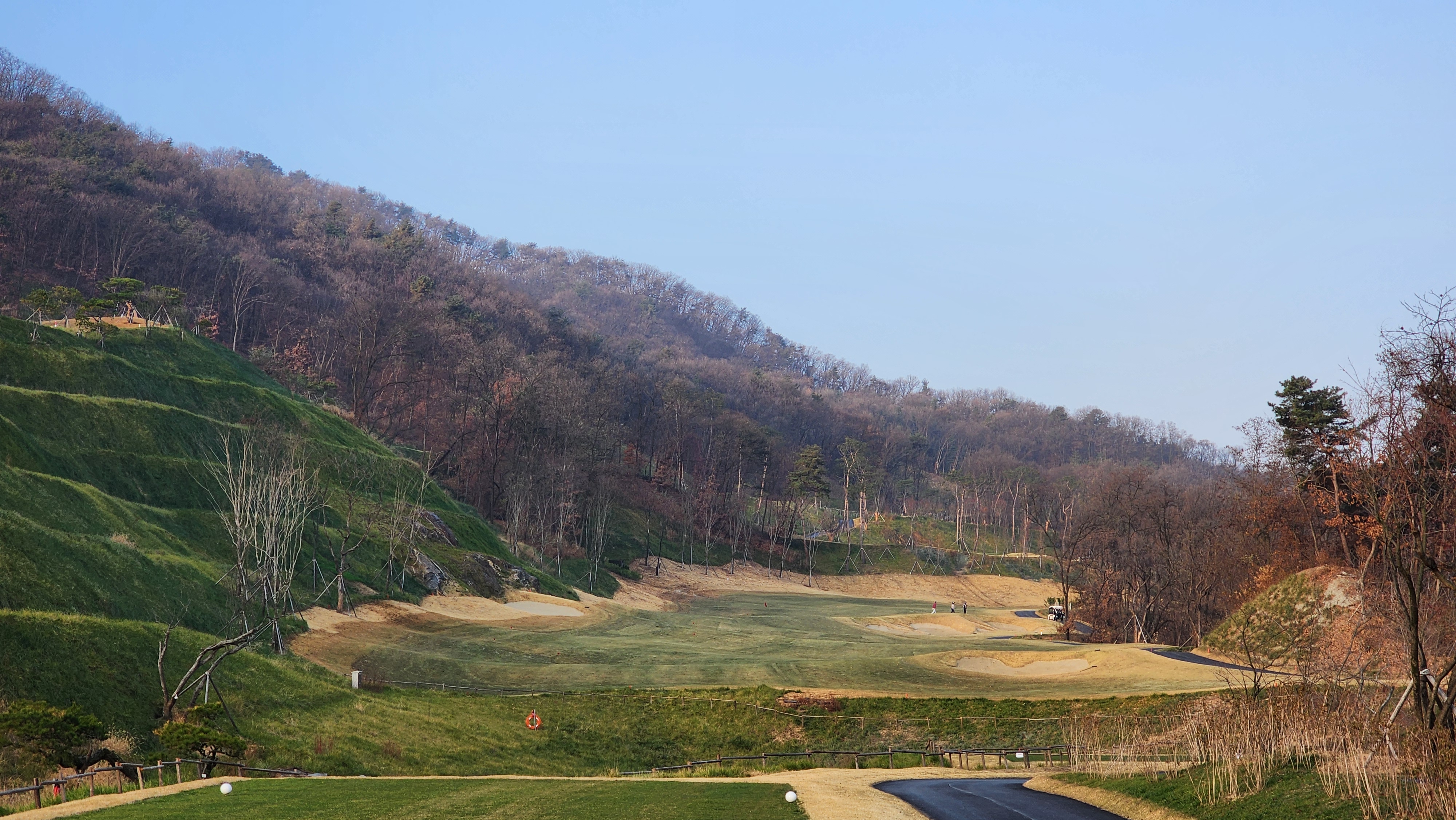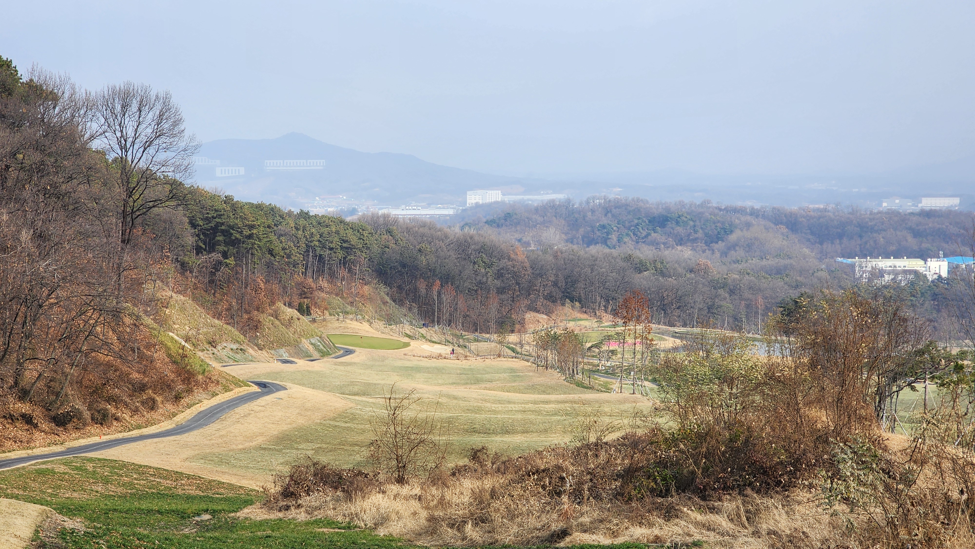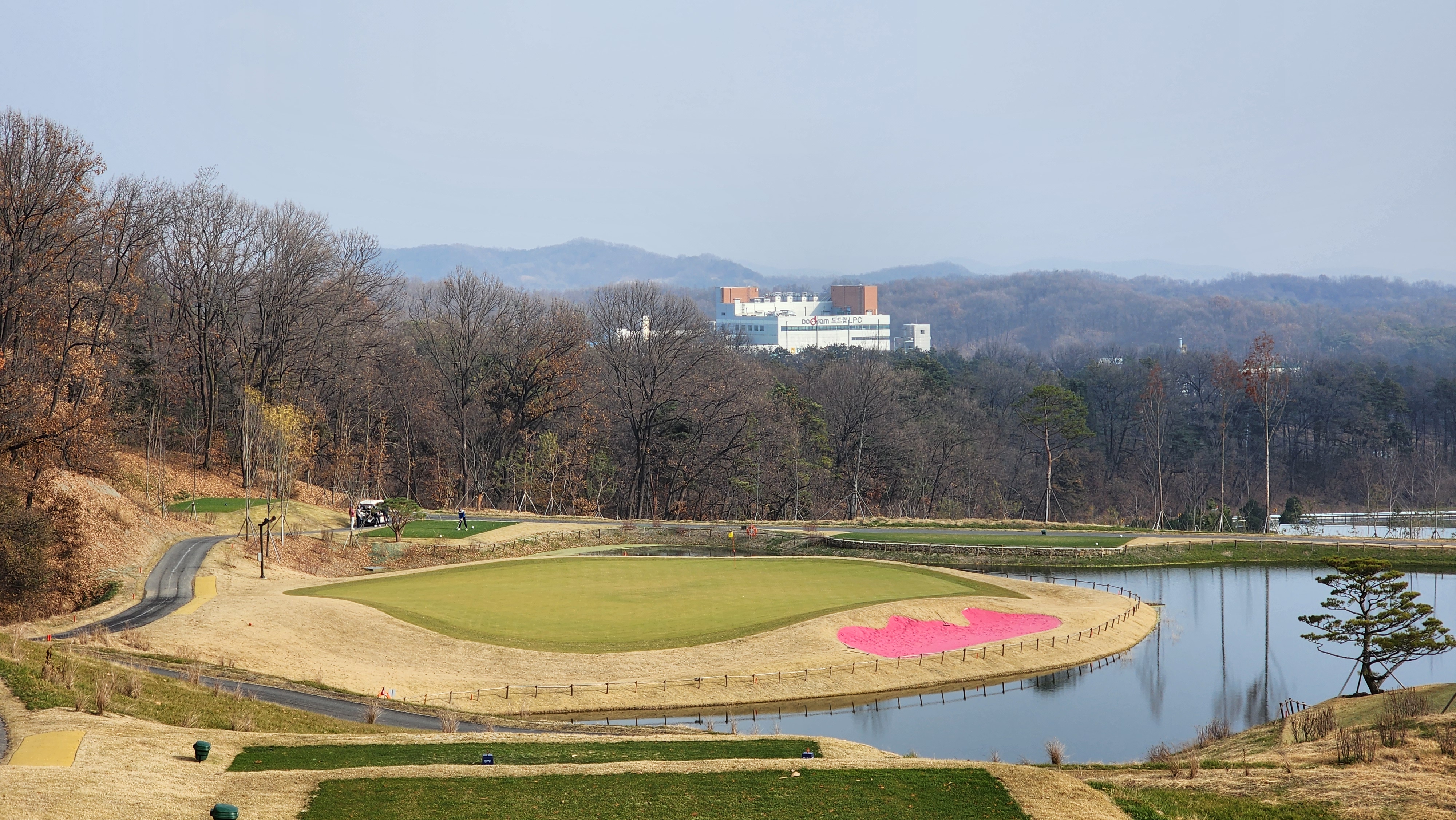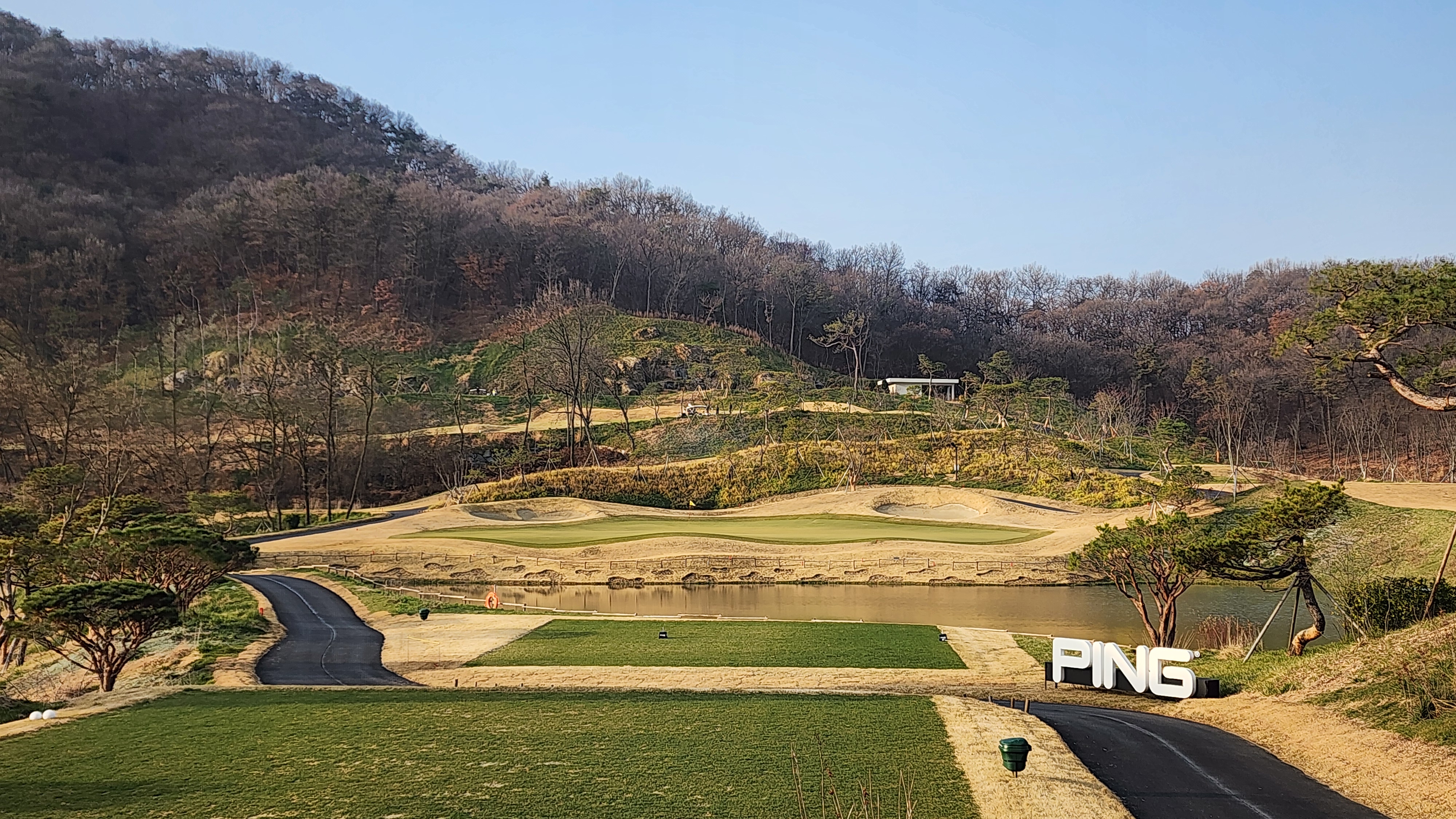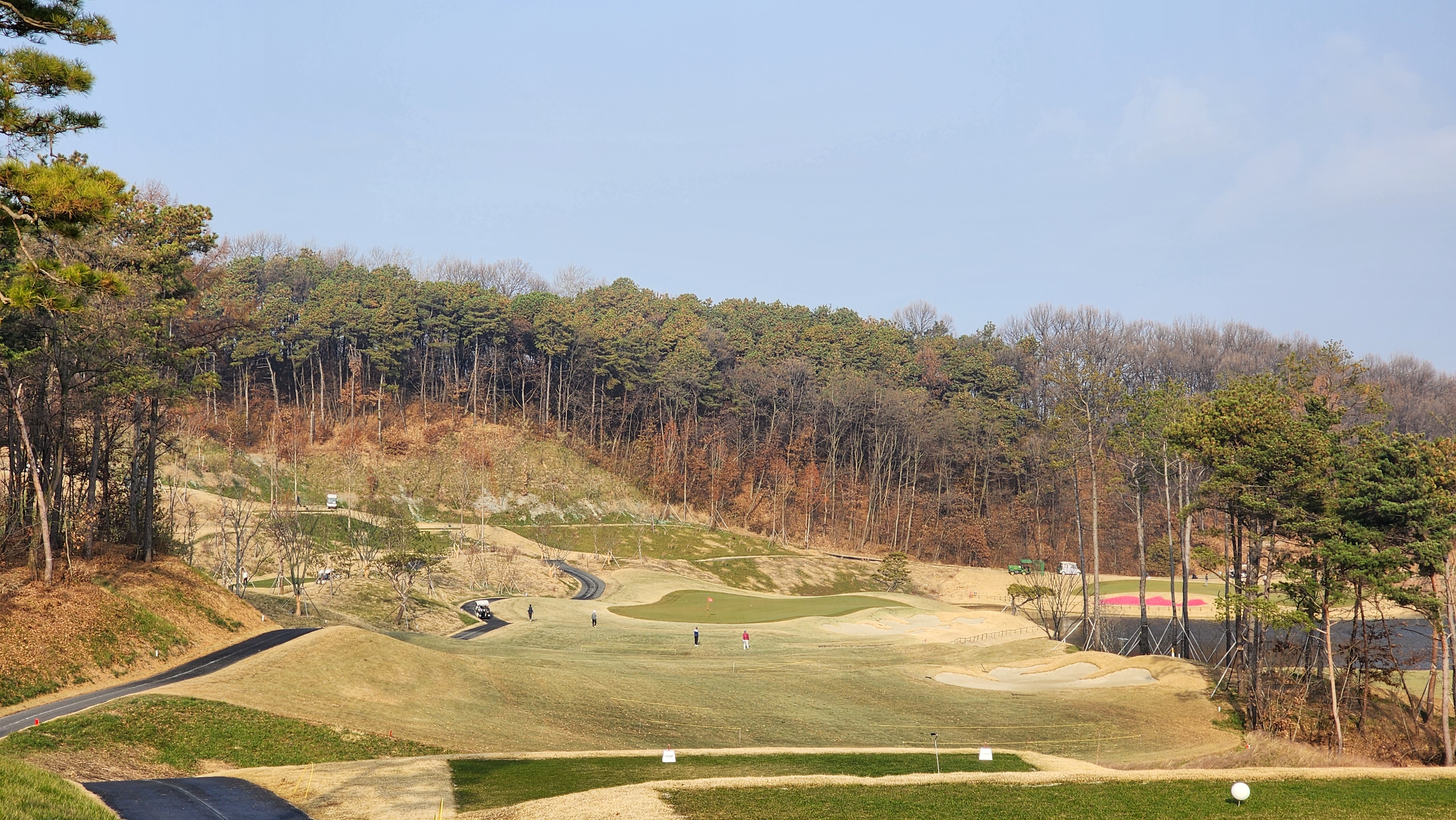 매섭게 춥던 날씨가 조금 수그러든 날이었는데 내비에 잘 나오지도 않는 길을 어찌어찌 찾아갔더니 시범라운드라 나중에 캐디피만 내시면 됩니다 한다. 아싸 좋아하긴 했지만 아직 클럽하우스도 변변하지 않아서 식당도 운영하지 않았고 (심지어 커피도 없음), 그나마 끝나고 샤워라도 할 수 있어서 다행이었다. 스타트 광장으로 내려가면서 안내문을 읽어봤더니 폭우 등으로 잔디의 활착이 원활하지 않아서 개장을 미루기로 했다고 적혀있던데 내 경험상 몇몇 골프장에서 개장전 시범라운드를 했어도 싸게라도 돈을 냈던 기억이라 아직 개장 인가를 받지 못한 것이 아닐까 싶었다. 막상 코스로 나가보니 기대를 접어서였을까 상당한 경치에 벙커의 배치나 코스 디자인도 괜찮았다. 페어웨이에는 새로 잔디를 깐 흔적이었어도 맨땅인 지역은 별로 없었고, 공을 조금씩 옮겨놓고 쳤다. 커다랗고 경사가 심한 그린이 포인트였는데 브레이크가 이리저리 심하면서 가장자리로 흘러내리도록 디자인되어 어려웠다. 18홀 내내 만족스럽게 플레이해서 내년에 다시 오면 아주 좋은 골프장이 되어있을 것으로 기대가 된다.